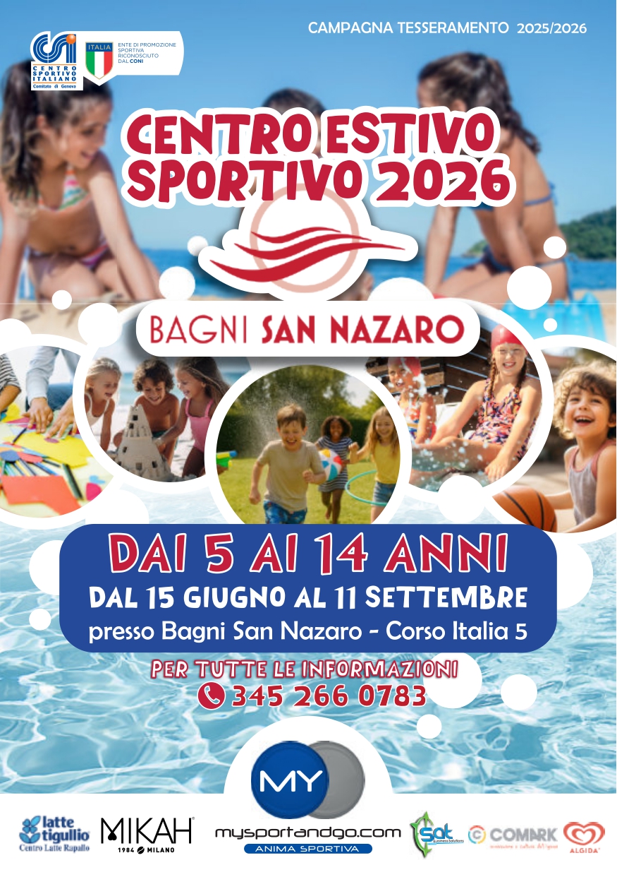 ISCRIZIONI APERTE dal 12 Aprile c/o i SAN NAZARO (area antistante il BAR) previo APPUNTAMENTO TELEFONICO al 345 2660783 nelle seguenti giornate